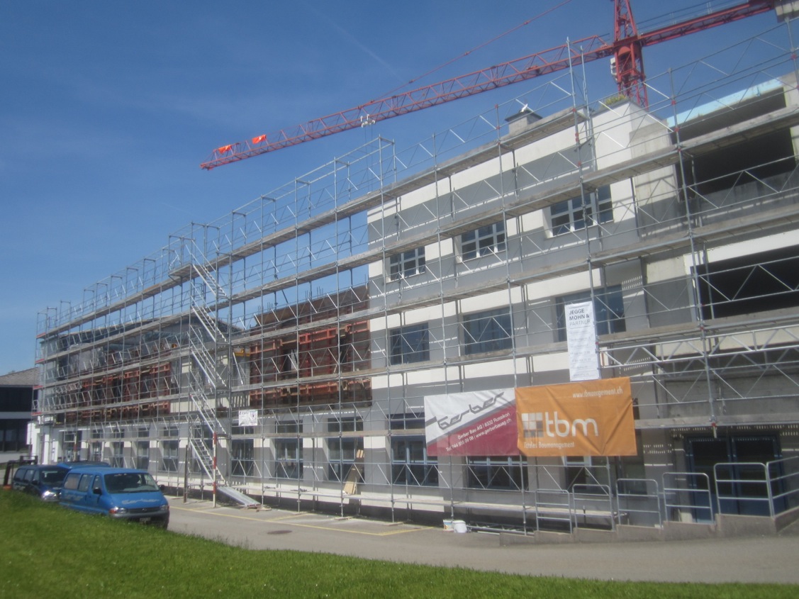 Die bestehenden Bauten wurden abgerissen und neu aufgebaut. Im neuen MFH enstanden 4 Wohnungen (3 Mal 3 1/2 und 1 Mal 2 1/2 Zimmerwohungen). Im neu zu Wohnzwecken umfunktionierten Schopf wurde ein schmuckes "Stöckli" (2 1/2 Zimmerwohnung) errichtet.