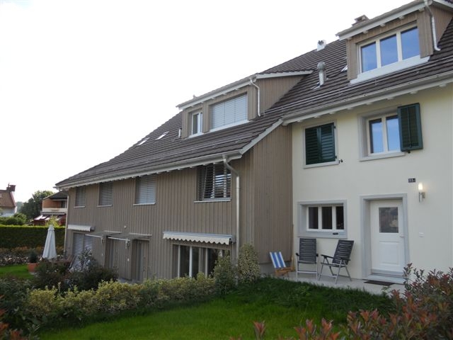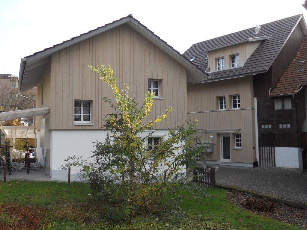 Für die Bauherrschaft erstellten wir in diesem Objekt drei neue Reiheneinfamilienhausteile mit einer Wohnfläche von 130-150m2 verteilt über jeweils drei Stockwerke. Der Altbau respektive der Bauernhausteil wurde bis auf die Tragkonstruktion ausgehölt und dann umgebaut mit dem Ziel möglichst viel von der alten Bausubstanz zu erhalten und zu zeigen. Die Scheune wurde abgerissen und an ihrer Stelle präsentiert sich nun ein moderner Neubau mit zwei Hausteilen. Die Fassade dieses Gebäudes zeigt sich in einer Holzschalung. Das Dach wurde über alle drei Einheiten neu erstellt. Zudem wurde eine Erdsondenheizungsanlage mit Bodenheizung installiert. Alle Fenster sind nun mit einer 3-Fach Verglasung ausgestattet.