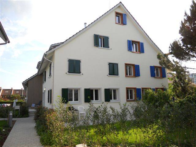 - Zeile1 Beschreibung: So präsentierte sich die bestehende Liegenschaft an der alten Landstrasse 33 in Gfenn Dübendorf vor dem Umbau. Und so sieht das Gebäude nach der gelungen Realisation der Bauphase aus.