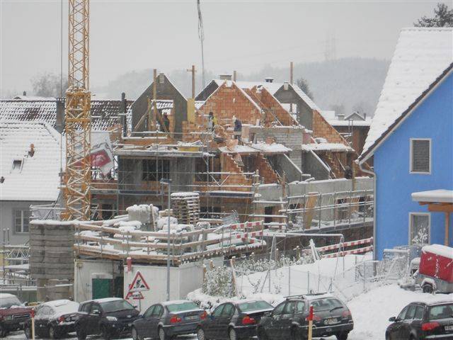 - Zeile3 Beschreibung: Zur Sicherung des Nachbargrundstückes musste eine Baumeisterrühlwand erstellt werden. Später wurde auch bei starkem Schneetreiben eifrig gearbeitet.